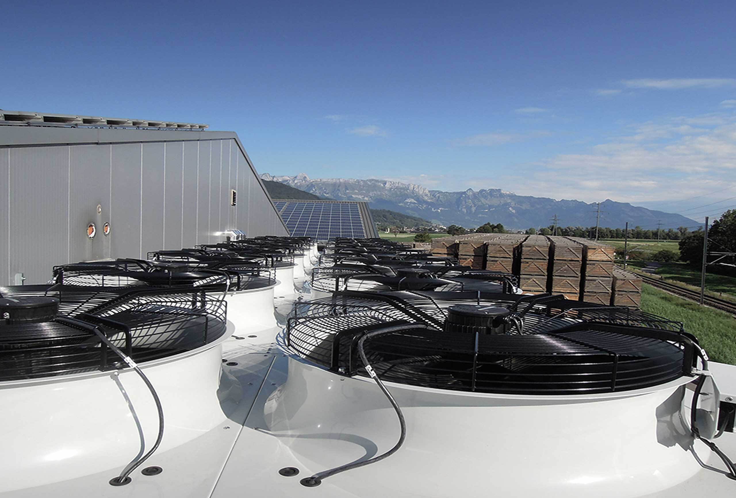 Mueller Azmoos and VPG are marked by innovative spirit and responsibility taking in sustainable matters. With the photovoltaic system on the rooftop, they contribute to the economic use of natural resources and produce electricity for approx. 444 households. Last year, VPG decided to replace its refrigeration systems, which were built in 2002 and 2006 and operated with the synthetical refrigerant R404A. This in cooperation with the foundation KliK. The old systems with flooded transfer systems and accordingly high refrigeration charge were replaced by new transcritical CO2-systems. The new systems have several advantages as higher flexibility concerning performance in the various halls and a significant higher energy efficiency, among others. Thanks to the support of the foundation KliK, the changeover to the new system with natural refrigerant leads to a reduction of the global warming potential (GWP) by approx. 390%.